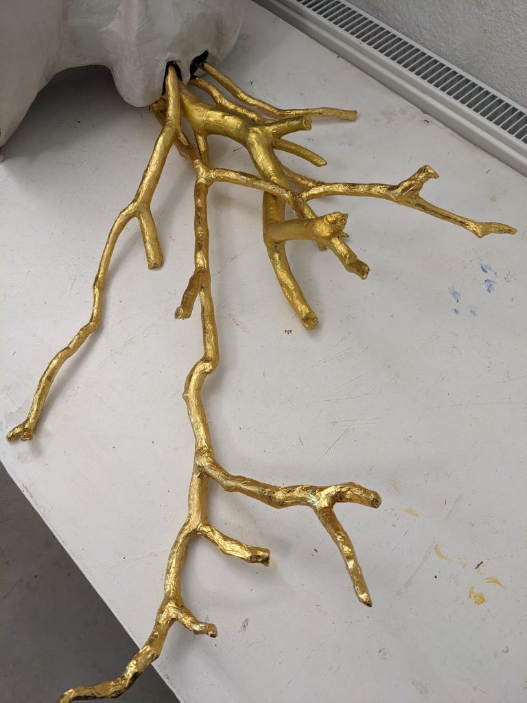 In parallel, the paintings and 2-dimensional parts of the work, positioned at the boundaries of the installations, reflects the uneasy theme of a merciless, ever evolving nature, symbolised as all powerful children “Singing the song of life and death” to the viewer, watching the endlessness of these fluxes of stimuli entering our bodies and minds, leaving our severed animal shells in a state of fragility. At present, I am investigating how this equation can be evolved away from this new and dangerous porosity.