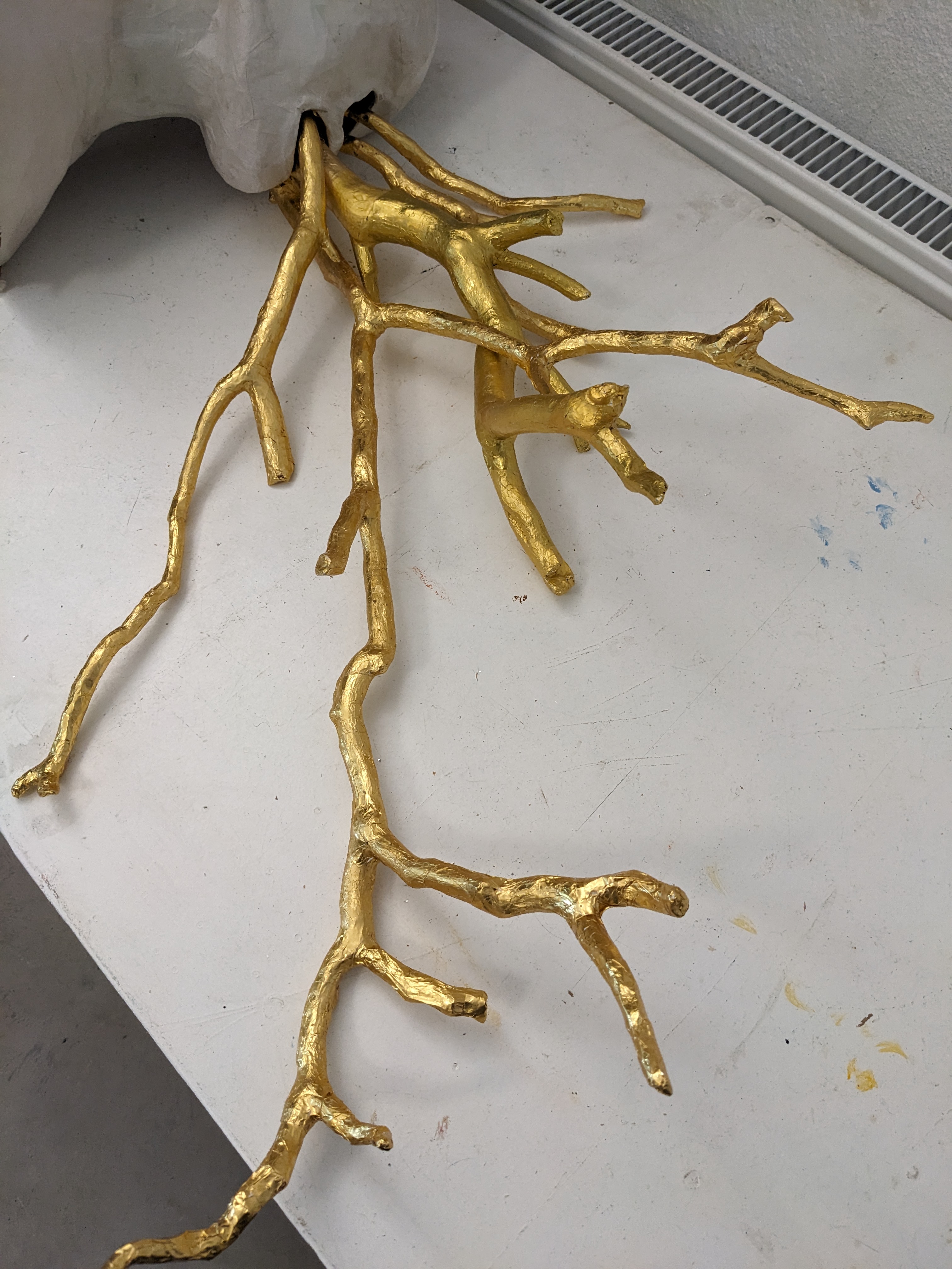 As a multidisciplinary artist, I have always treated a body of work as an installation in an attempt to circumvent museal decontextualisation, using the space itself as a part of the exhibit. Coming from painting, a natural evolution towards installation and sculpture became a means of giving more depth to the worlds created. The present work focuses on worlds mirroring our own, permeated by mirages, distorted memories, haunted by hidden intentions; symbolism taking flesh and an independent will. The viewer is presented with a tangle of human-like decoys busy in obscure and unnerving behaviours, obsessively touching and facing silent obsidian oracles, while spilling rogue energy, their body colourless like long soft shells or white worms. Keeping in mind the work of Art theorist Suzy Gablik while approaching themes of community, ecology, as well as a sacred and archetypal perspective in Art, I favour materials left behind from consumerism and human activity, such as discarded newspapers, conference room notes, trimmed branches from council hedge cuttings, worn bedsheets, metallic (chocolate and cigarette) wrappers.  I aim to reactivate the sacred aspect of these materials.