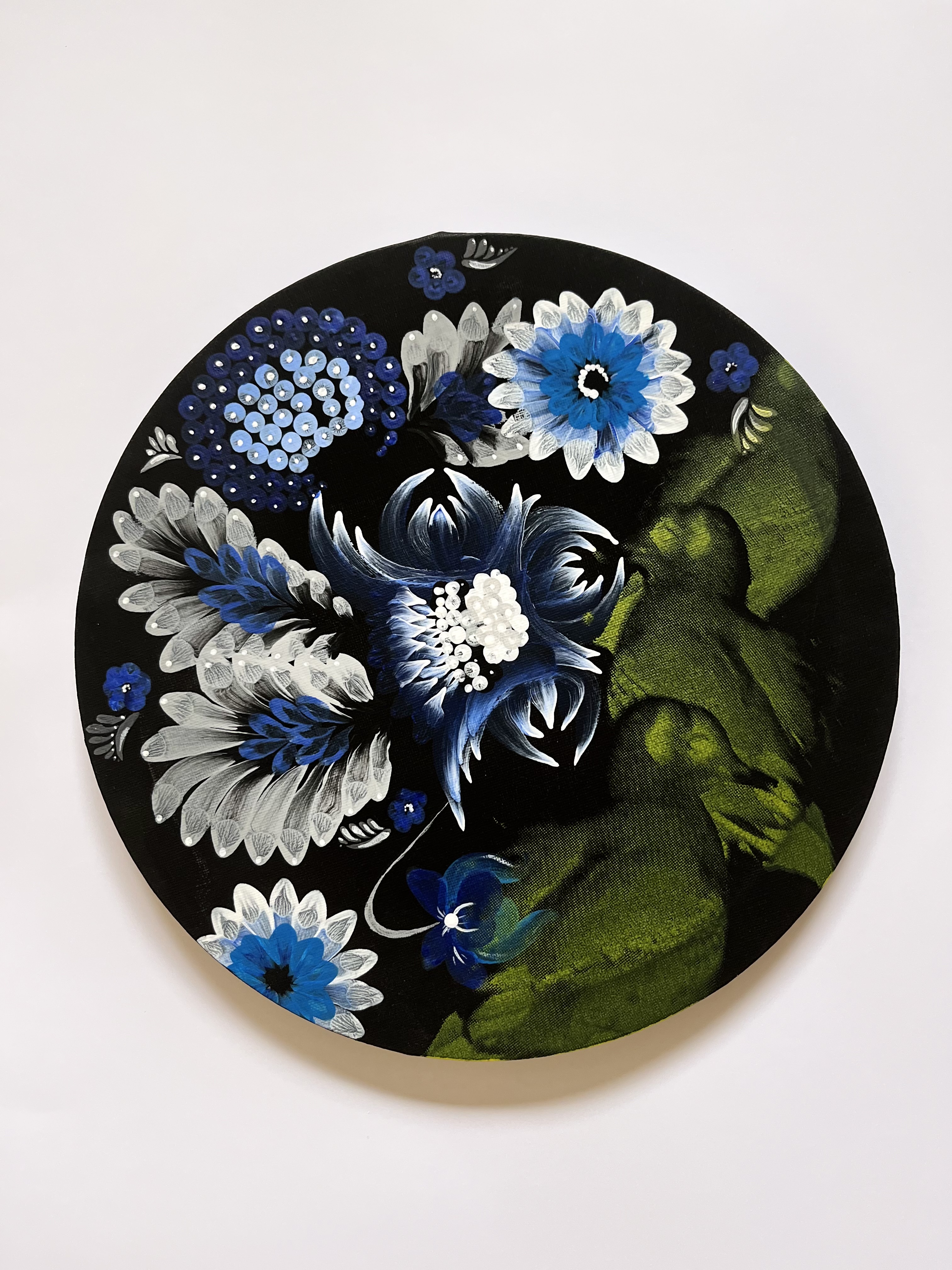 Viktoria’s artistic journey began in her early years, inspired by the rich tapestry of Ukrainian folklore and the intricate patterns of Petrykivka painting. She is a self-taught artist. Later, she discovered her passion for screen printing. Combining these two distinct art forms, Viktoria developed a signature style that marries the meticulous detail of Petrykivka motifs with the bold, graphic qualities of screen printing.